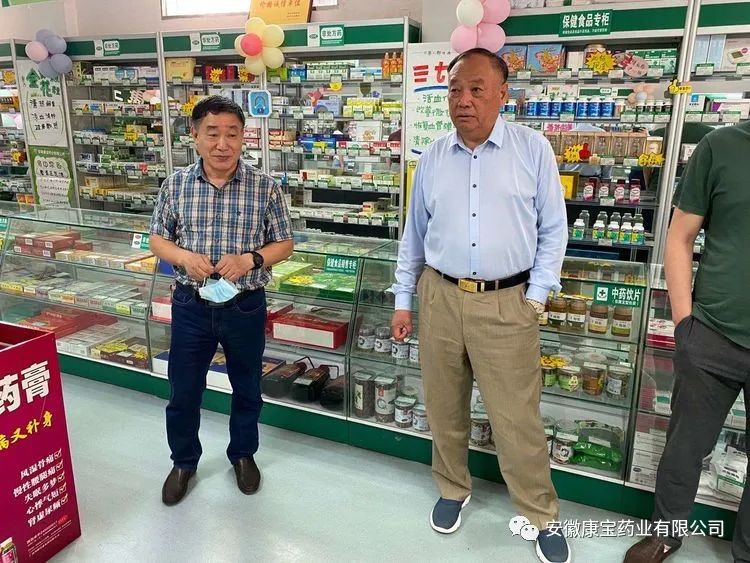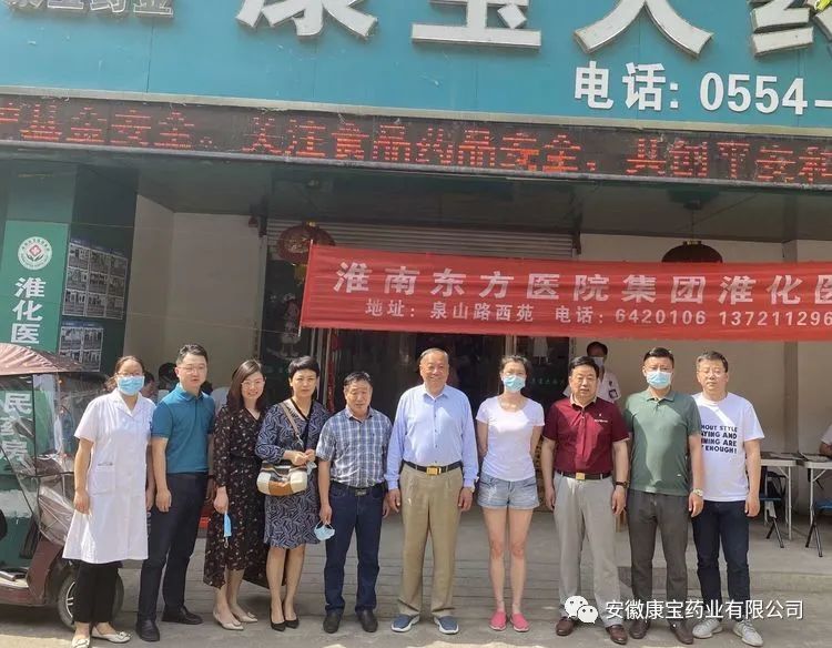醫院集團董事長江鴻方,康寶藥業董事長朱興林及公司領導一行也來到泉山店參加店慶活動,并為藥店的發展規劃及疫情防控做了具體部署。